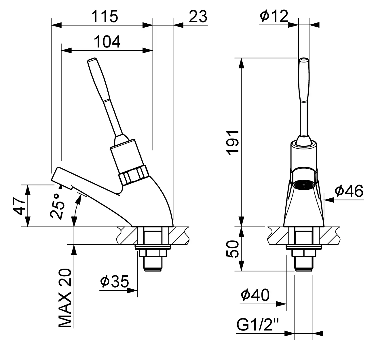 Bateria umywalkowa z dźwignią dla niepełnosprawnych, na wodę zmieszaną