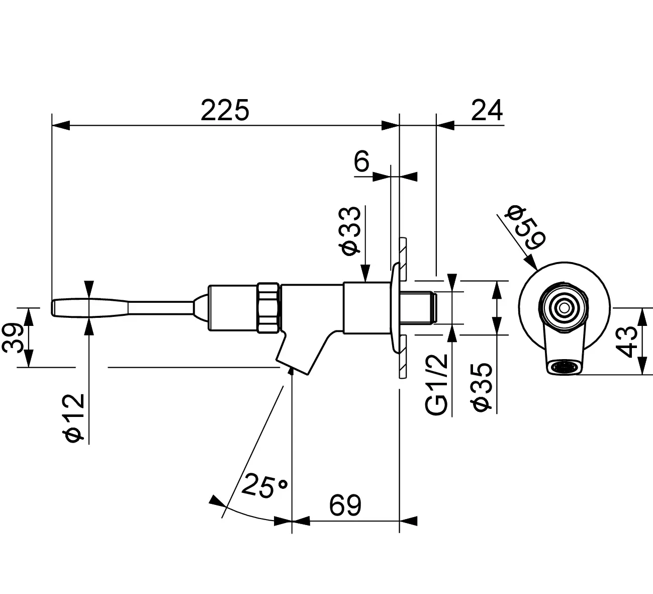 Bateria umywalkowa ścienna, z dźwignią dla niepełnosprawnych