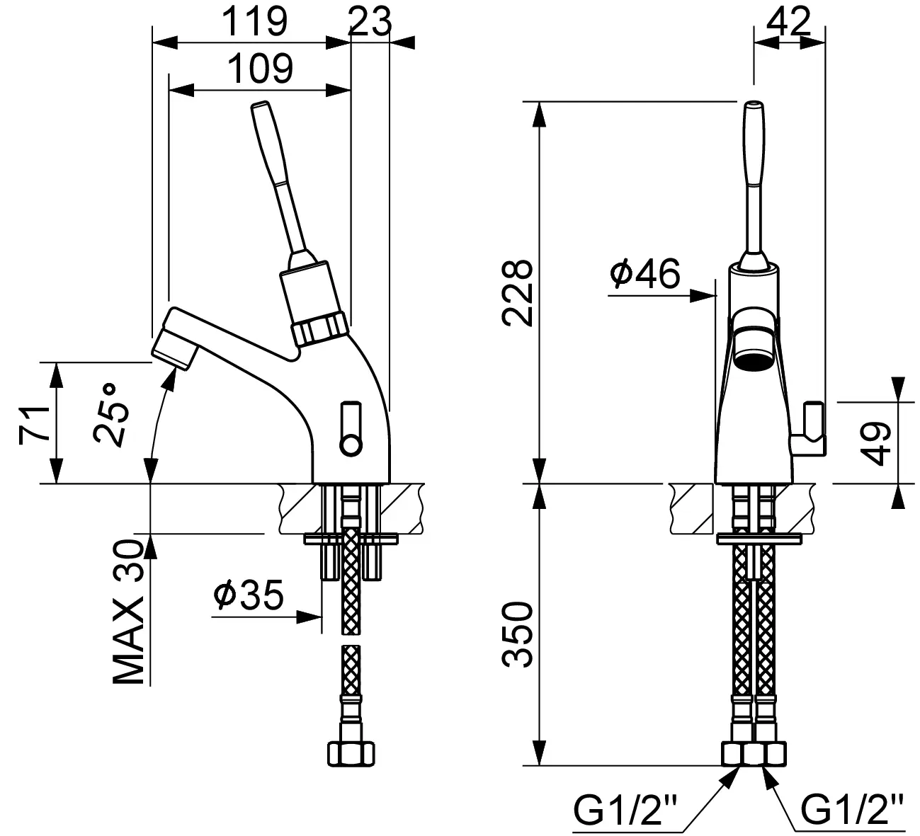 BL102 Bateria kliniczna, umywalkowa, z obrotową wylewką
